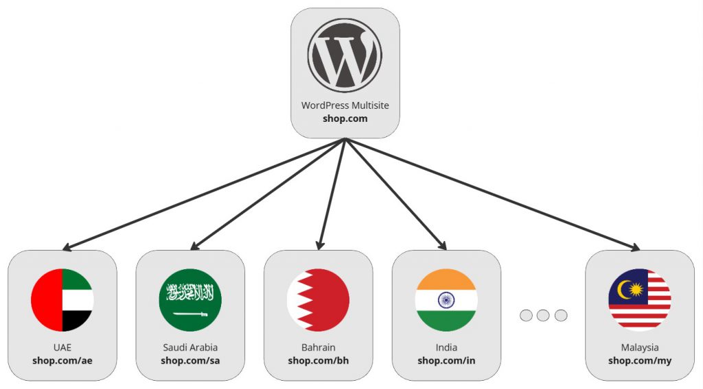 - Maintain independent sites for each country, enabling distinct pricing, inventory, and localized content.