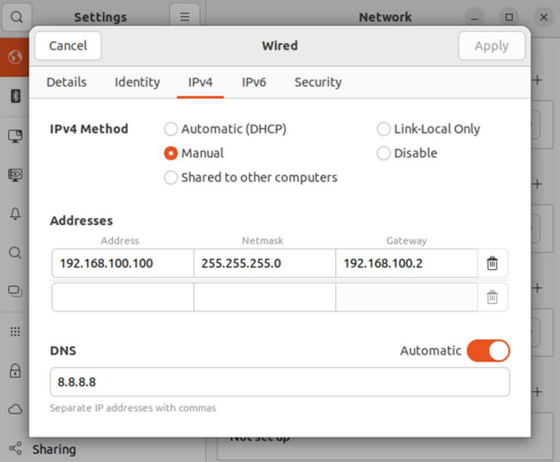 Finally, we used the Ubuntu interface to set a specific static IP for the L1 VM, ensuring consistent and reliable access to OpenStack. (See Figure 4)