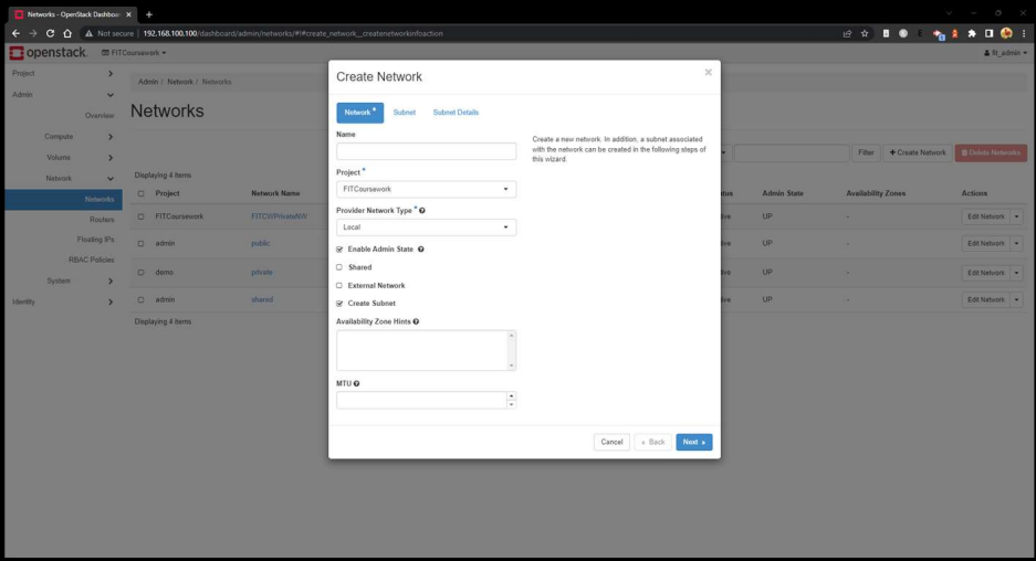 A private network ensures secure and isolated communication for instances. Create it as shown in Figure 11: