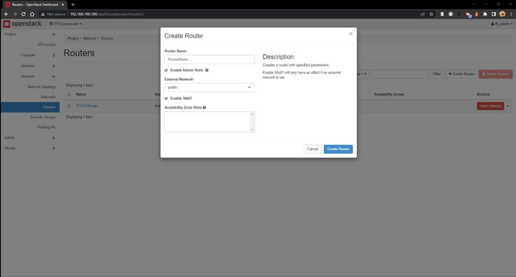 Create a router to connect the private network to the public network, as shown in Figure 13.