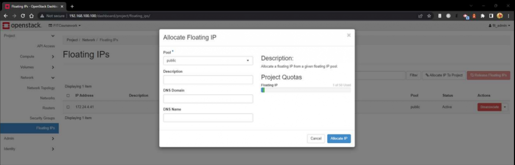 Assign a floating IP to provide a fixed IP for the instance. This allows inbound access from external networks without issues (Figure 14).