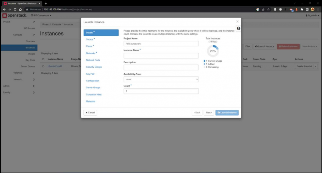 You can now launch an instance from the Compute section of the project by following these steps, as shown in Figure 16: